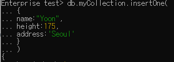 - insertOne() : 도큐먼트를 하나씩 삽입하는 명령어