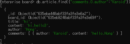 - comments.0.author : 첫번째 댓글의 저자. (필드명.index.필드명)