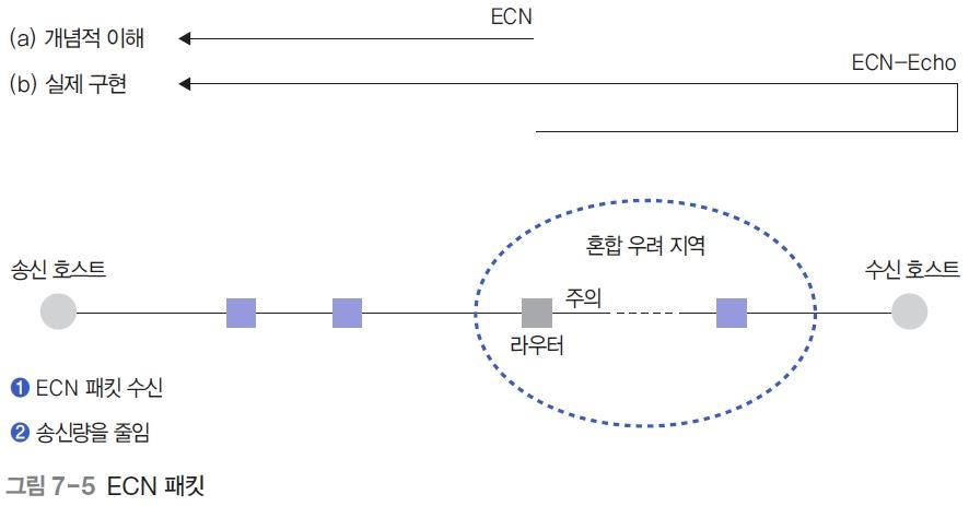 > ECN 패킷을 사용(Explicit Congestion Notification)
