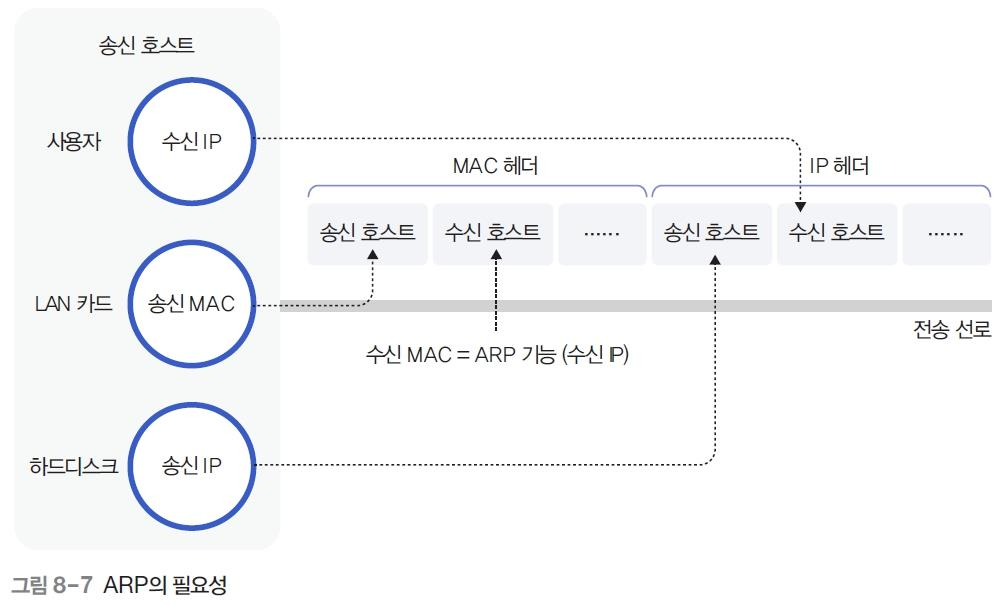 - 실제로 통신이 이루어지기 위해선 데이터 링크 계층의 MAC 주소를 알아야 가능