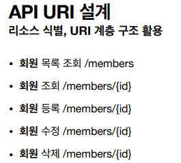 - 리소스(회원), 행위(조회, 등록, 수정, 삭제)