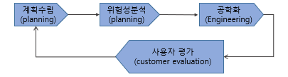 - 고객의 초기 요구사항에 대한 위험을 분석하여 관리 기술을 통해 해결하고자 하는 모형